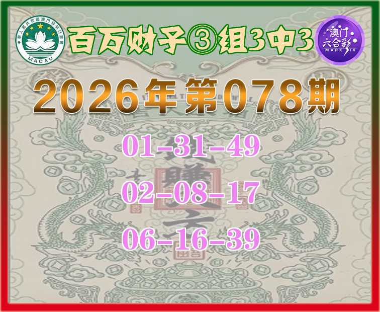 100期:《百万财子》 🍎③组3中3🍎