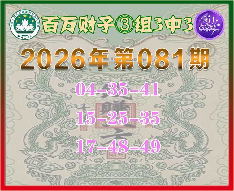 081期:《百万财子》 🍎③组3中3🍎